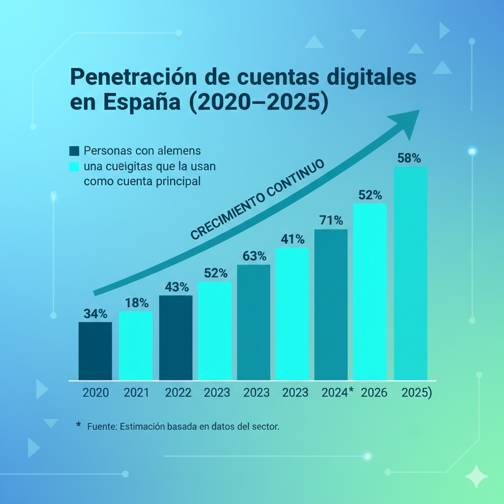 Tabla 1 — Penetración de cuentas digitales en España (2020–2025)
